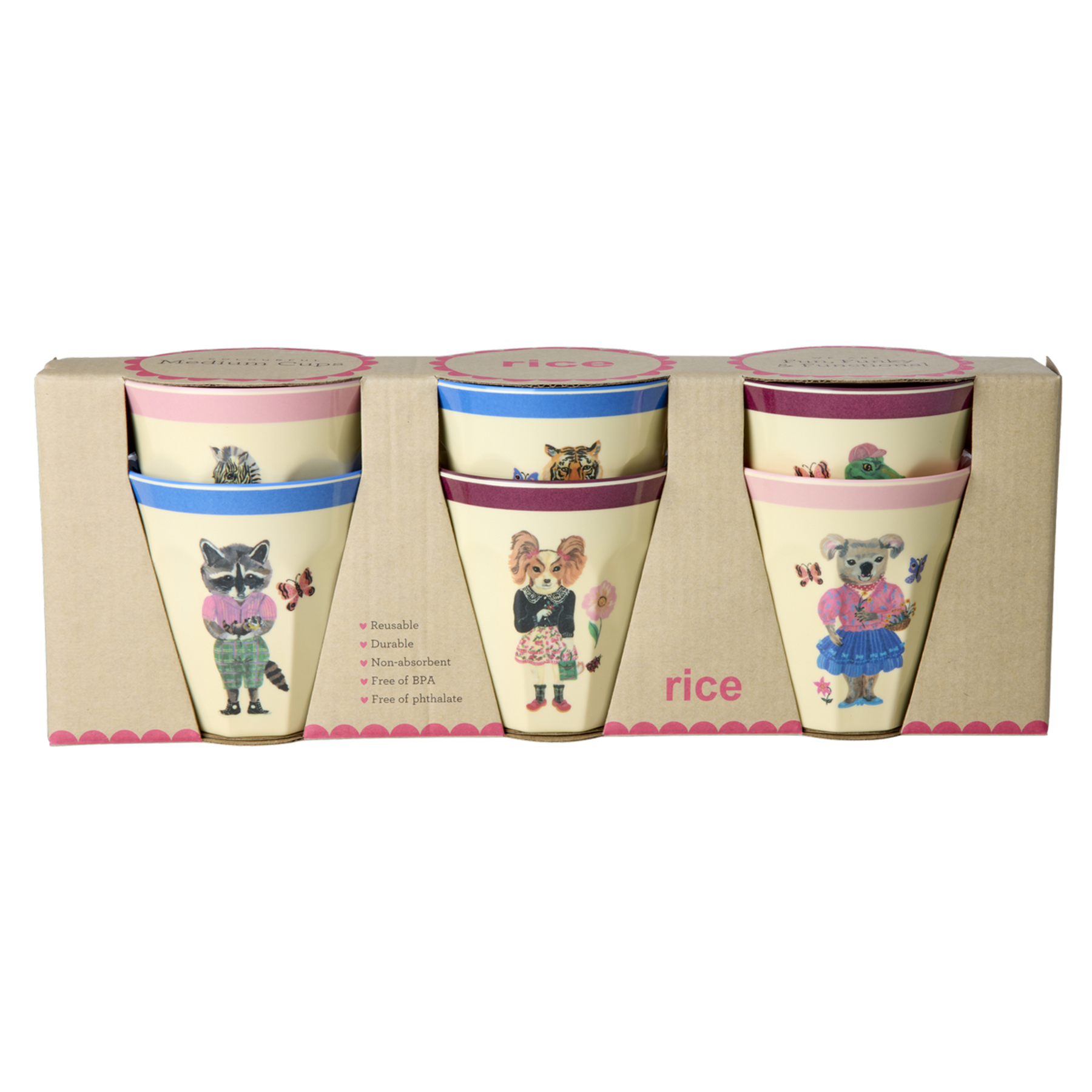Set van 6 vrolijke bekers van RICE met magische illustraties van Nathalie Lété. Gemaakt van duurzaam melamine – stevig, licht en perfect voor dagelijks gebruik. Ideaal voor binnen én buiten. Een kleurrijke toevoeging aan elke tafel!