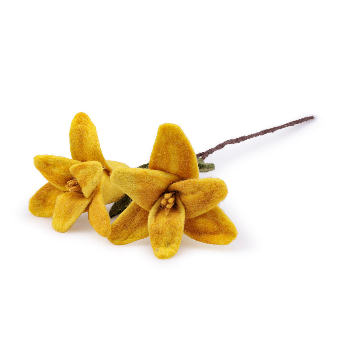 Mooie duurzame Lelie van vilt. In de stengel is metaaldraad verwerkt zodat de bloem in vorm gebogen kan worden indien gewenst. Deze Lelie is erg duurzaam want hij verwelkt nooit!