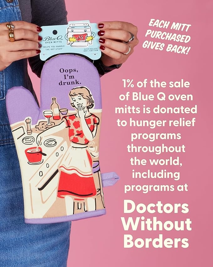 Deze Blue Q ovenwant Oops I'm Drunk is gemaakt van 100% katoen met extra isolatie en een comfortabele pasvorm. Veilig, praktisch en met humor – een uniek cadeau dat zorgt voor een glimlach in elke keuken.