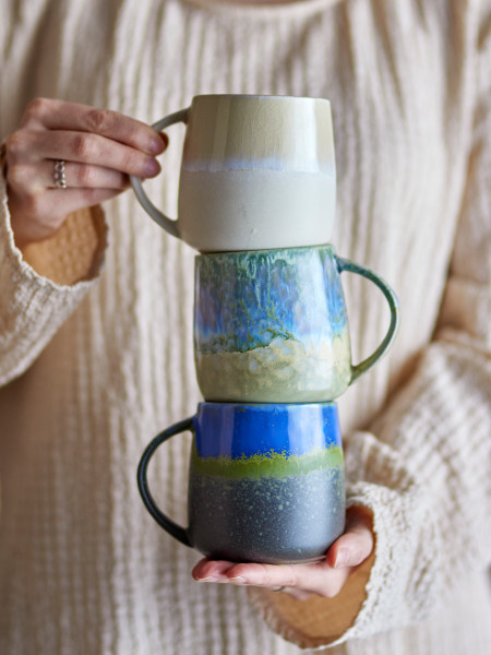 De Cloe Mokken van Bloomingville worden geleverd als set van 3 en zijn gemaakt van aardewerk met glazuur in verschillende tinten. De vormen en het rustige kleurenspel zorgen voor een harmonieuze uitstraling, waarbij elke mok net even anders en uniek is.