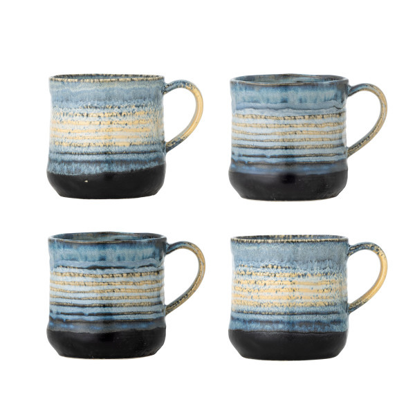 De Deana Mok van Bloomingville is een stijlvolle mok van aardewerk met een glazuur in zachte blauwtinten en beige. De verticale strepen en het speelse kleurverloop maken elke mok uniek. Een prachtig uniek cadeau om mee te verrassen of zelf van te genieten