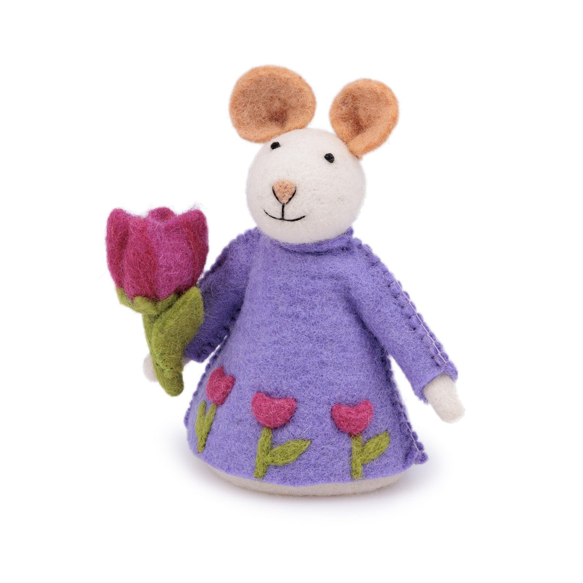 Deze handgemaakte decoratie Muis met fuchsia tulp van Sjaal met Verhaal straalt vrolijkheid, trots en verbondenheid uit. Met liefde gemaakt en vol betekenis. Een warm gebaar met een eerlijk verhaal, perfect als uniek cadeau om iemand te verrassen.