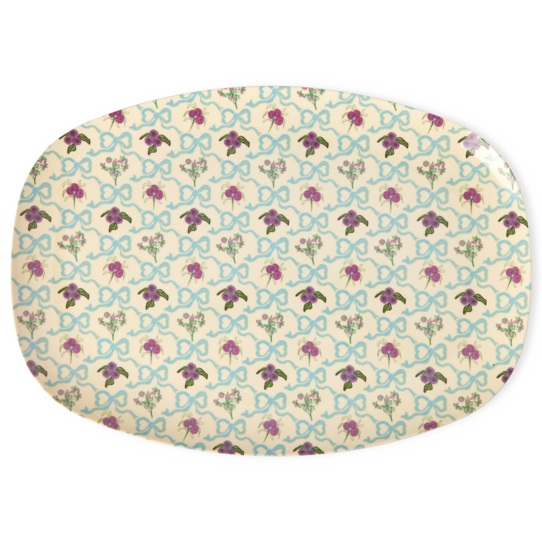 Een groot rechthoekig melamine dinerbord van rice met de print 'Bow and Bouquet' . Stijlvol en veelzijdig: te gebruiken als dinerbord, dienblad of decoratief plateau. Een uniek cadeau dat praktisch en mooi is voor elke gelegenheid!