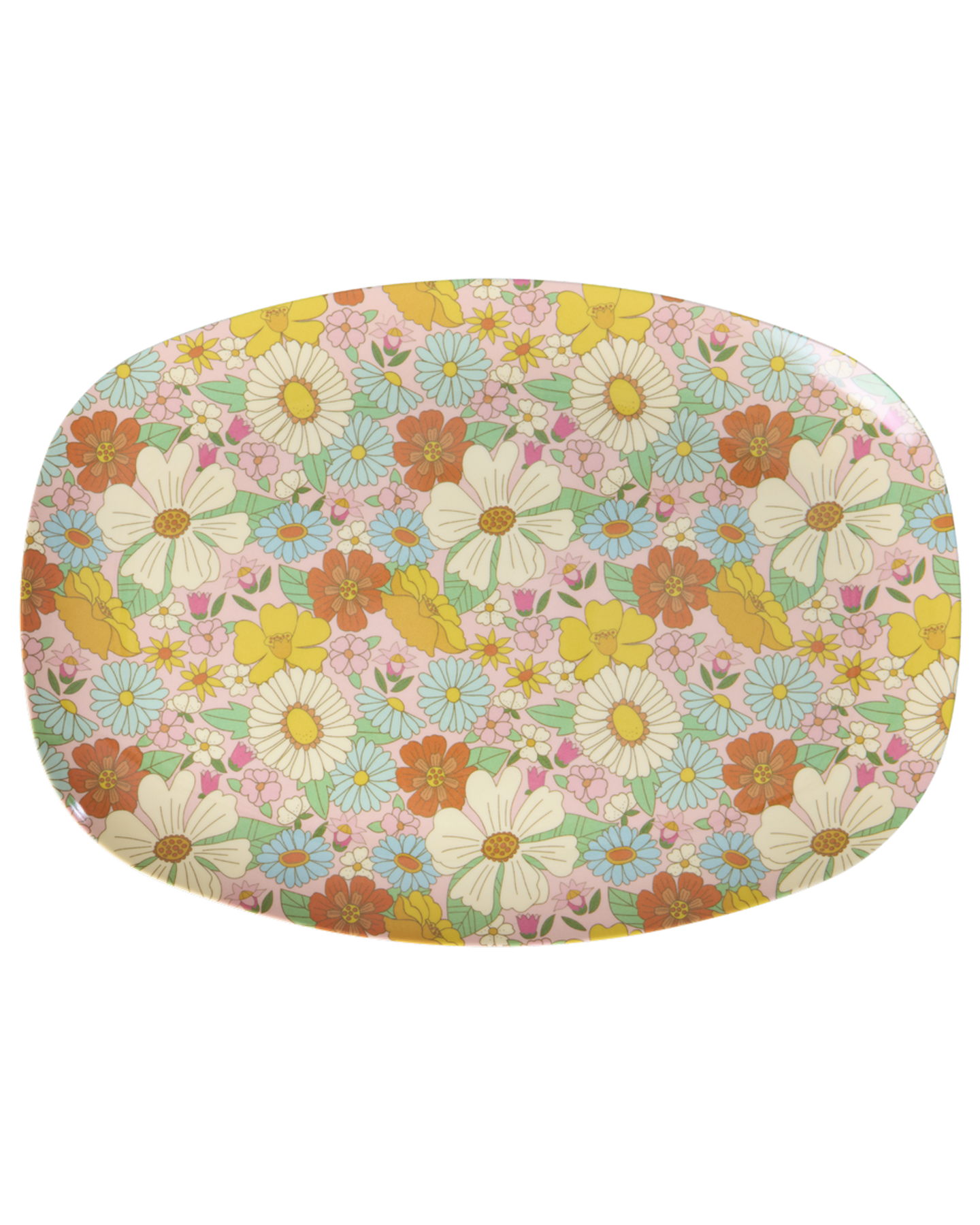 Rechthoekig Rice melamine bord met vrolijke Flower Power-print – kleurrijk, praktisch en vol karakter! Gemaakt van sterk, duurzaam melamine en eenvoudig schoon te maken. Perfect voor dagelijks gebruik en een speels, uniek cadeau!