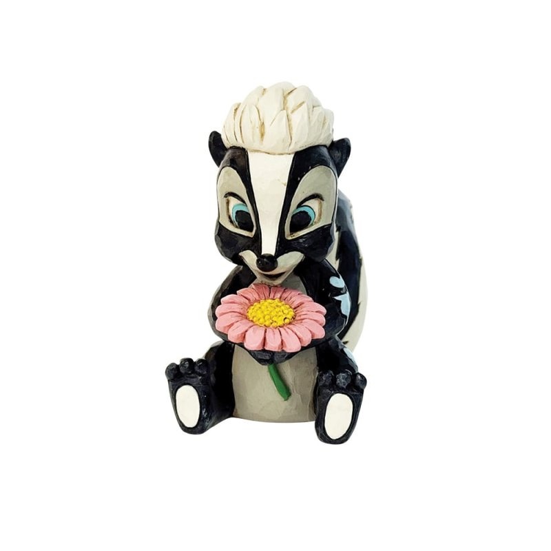 "This darling Jim Shore miniature features Flower, the skunk from Bambi, adorned with striking rosemaling and holding a handful of fresh flowers. With a bright smile and childlike love, she radiates sweetness and charm."
