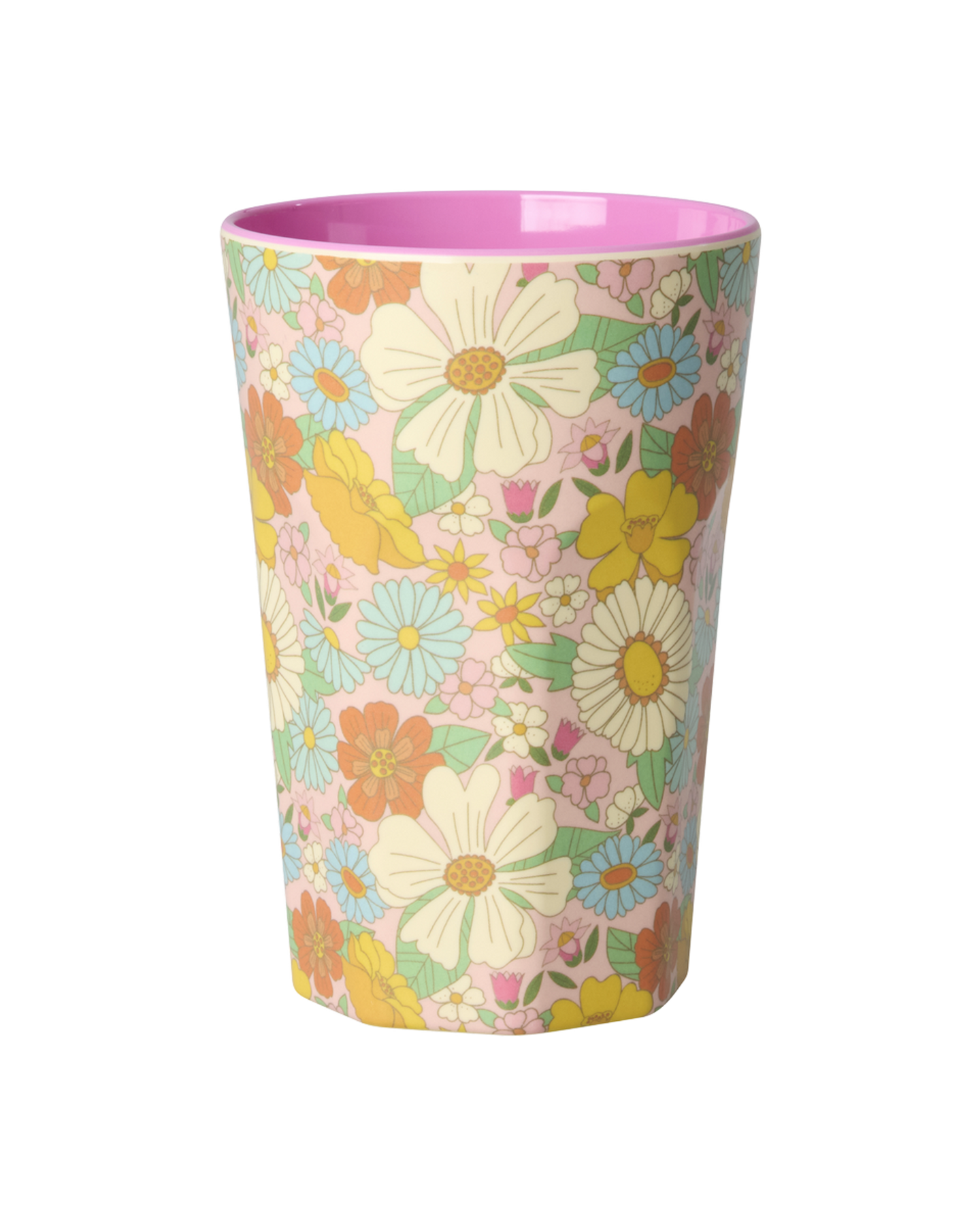 Populaire Rice grote beker met de vrolijke Flower Power-print en roze binnenkant – een echte favoriet! Gemaakt van sterk, duurzaam melamine en eenvoudig schoon te maken. Ideaal voor jong en oud en een kleurrijk, uniek cadeau!