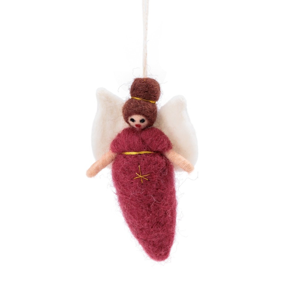 Dit handgemaakte engeltje in cyclaamrode jurk met gouden details en zachte witte vleugels straalt warmte en charme uit. Haar lieve gezichtje maakt haar een geliefde blikvanger. Een symbolisch ornament én een uniek cadeau vol betekenis.