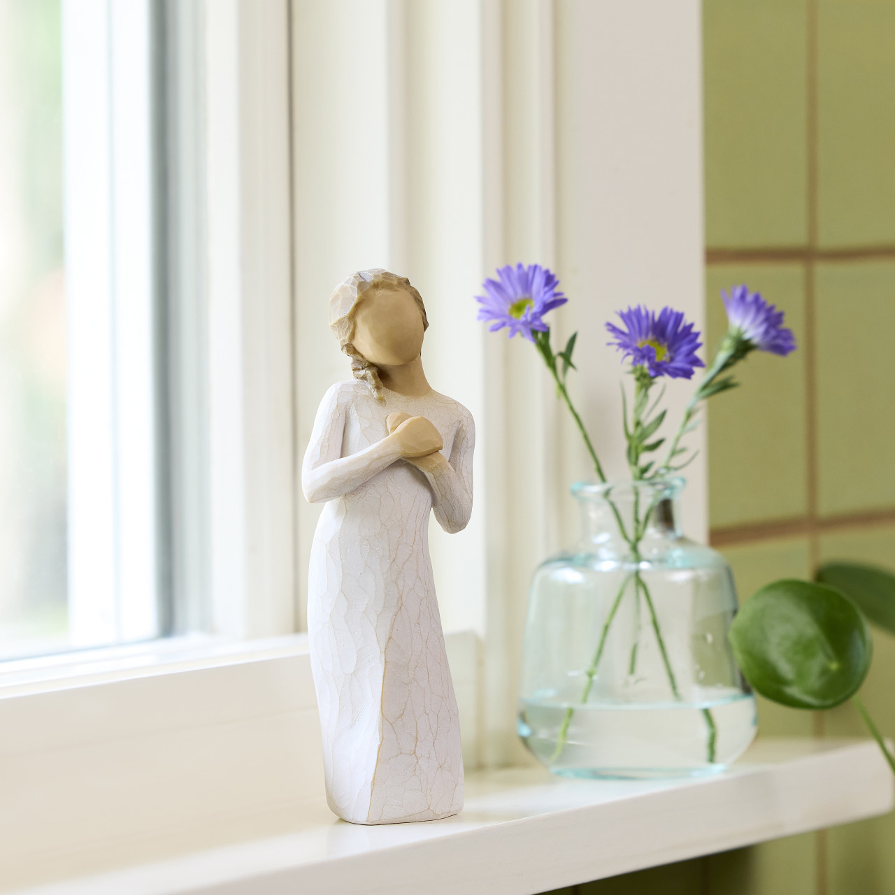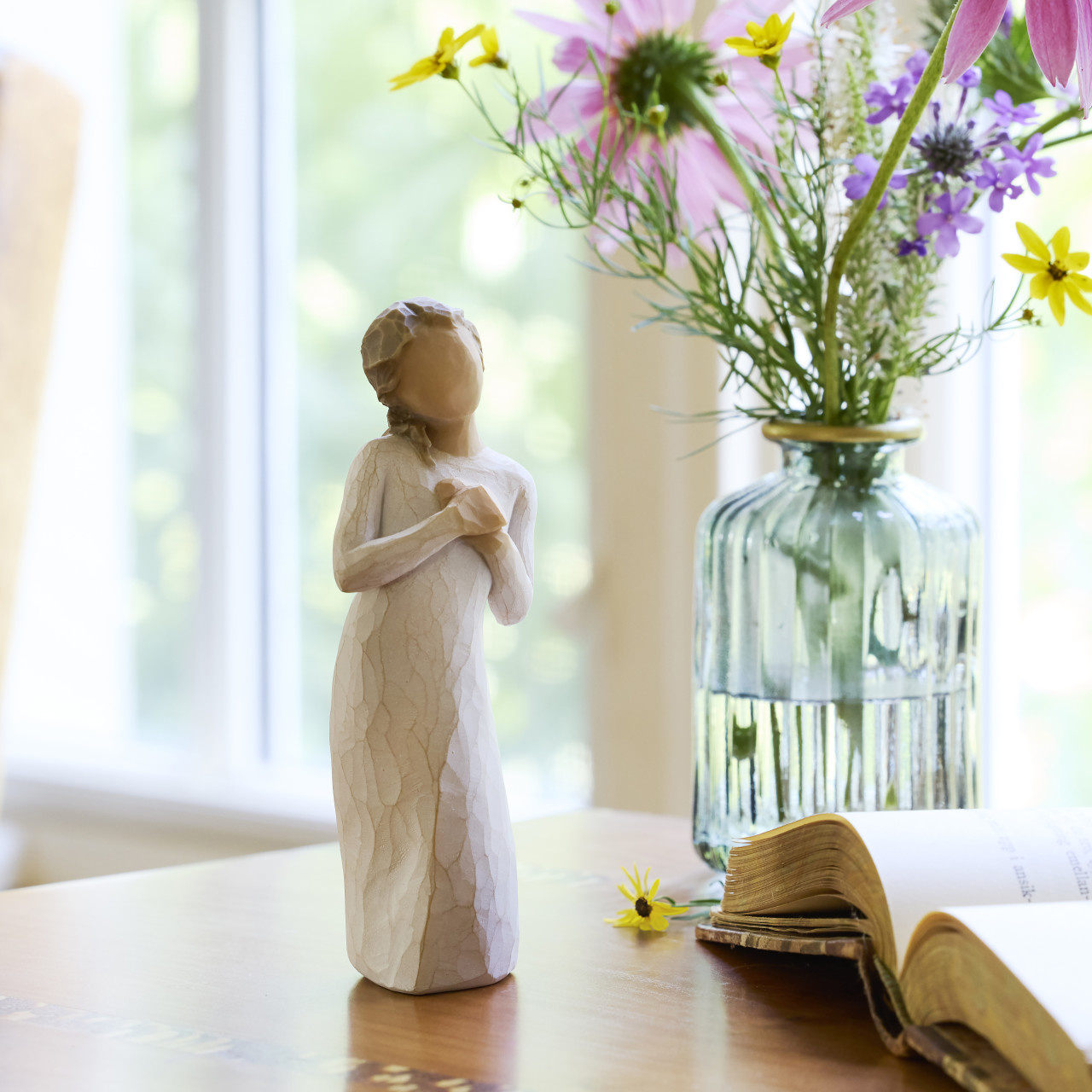 Willow Tree beeldjes zijn prachtige cadeaus voor bijzondere gelegenheden. Elke origineel Willow Tree figuur wordt met de hand door de kunstenares Susan Lordi ontworpen, waarbij haar familie en vrienden model staan. Bij elk beeldje probeert Susan een bepaald gevoel of gebeurtenis op een subtiele manier uit te beelden. De gegoten beeldjes die vervolgens aan de hand van het originele model worden gegoten stralen hetzelfde vakmanschap én het door de kunstenares ingelegde gevoel uit. De Willow Tree beeldjes worden met de hand beschilderd. De Willow Tree beeldjes worden gekenmerkt door het gebruik van zachte kleuren en de verwijzingen naar de natuur. Susan: "Ik probeer bij elk figuur een open uitstraling te creëren. Zo hoop ik dat er persoonlijkheid ontstaat en toch ook de vrijheid om te interpreteren." De Willow Tree beeldjes drukken door subtiele gebaren liefde, geborgenheid, hoop en moed uit. De Willow Tree beeldjes zijn prachtige cadeaus voor de mensen die dicht bij ons staan: voor onze familie, vrienden of mensen die op een andere manier iets bijzonders voor ons betekenen. Met recht een uniek cadeau!