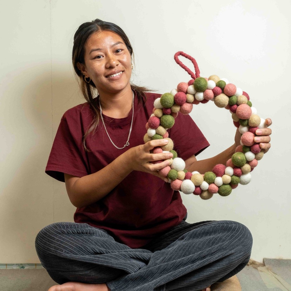 Sjaal met een Verhaal - Kerstkrans Viltballetjes Mistletoe Dreams