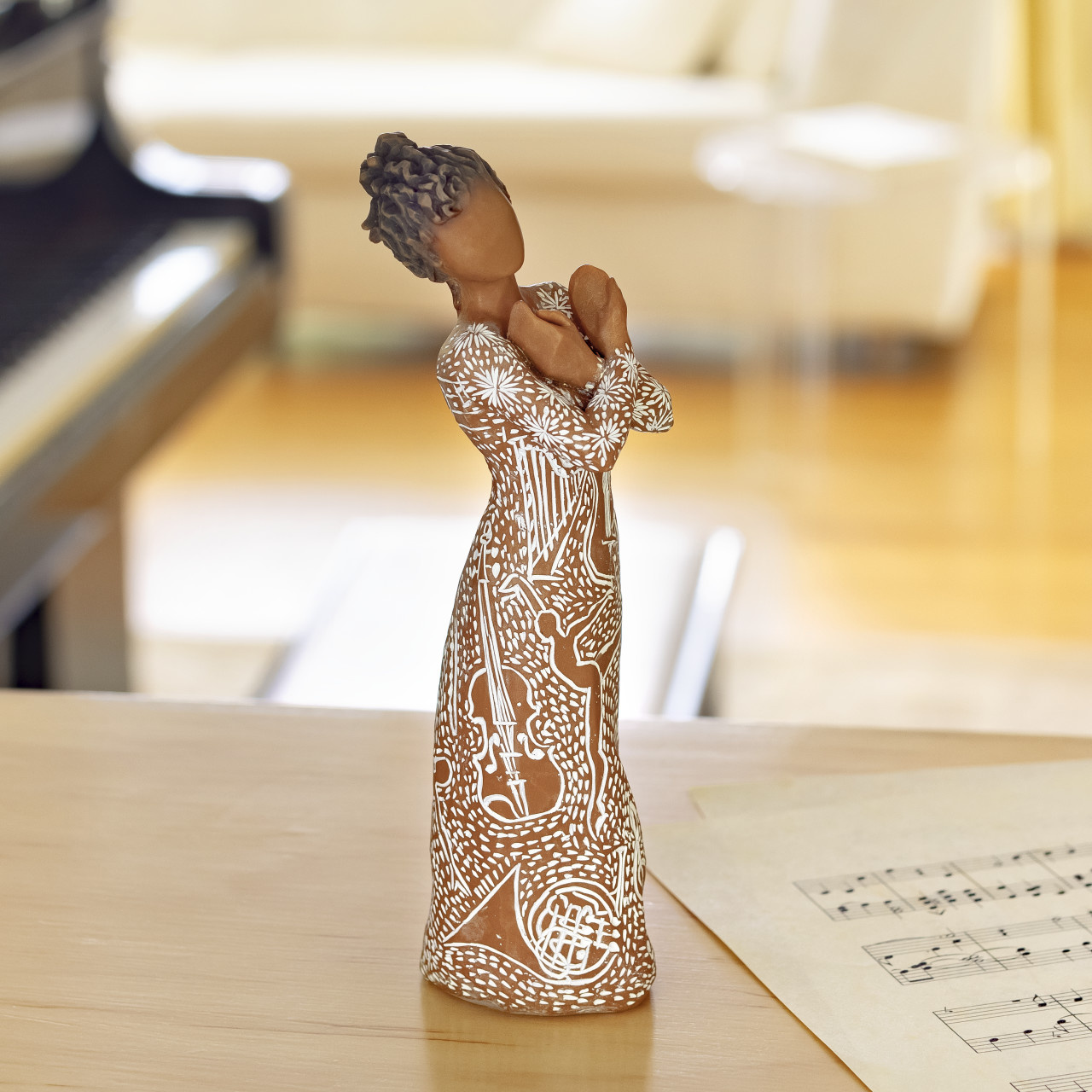Music is the foundation of all the performing arts. Music transports us-it can be absorbed quietly, evoking strong memories, or move us in powerful ways. It makes us dance, laugh, cry, sing, create. It's the cornerstone of so much that we love. Her gesture is one of being enraptured. She could be the listener, or she could be the performer, sharing her gift with others." - Susan Lordi
