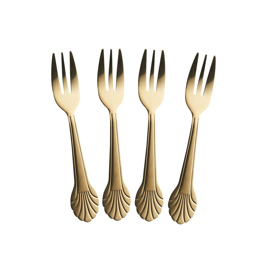 RICE - Set 4 Taartvorkjes - Stainless Steel Seashell - Gold