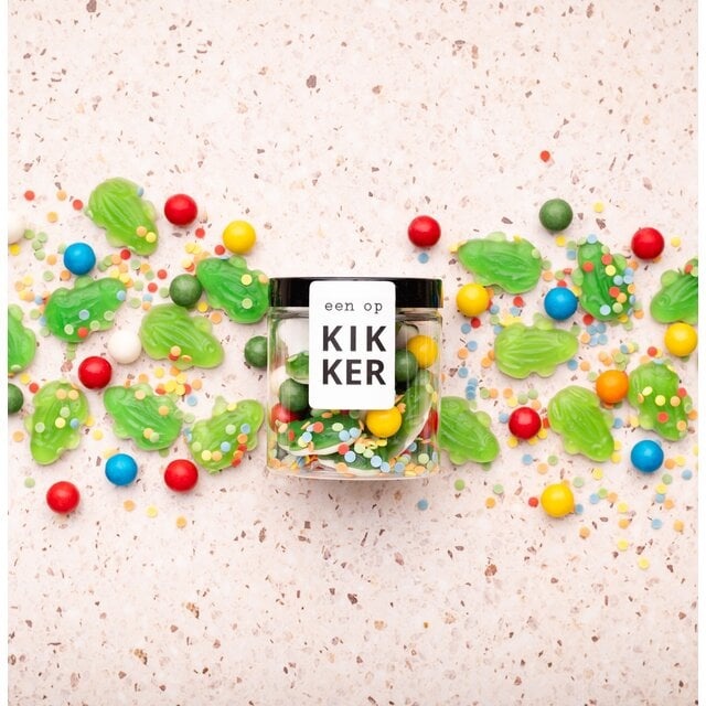 Een vrolijk en opbeurend uniek cadeau: Snoep “Opkikker” van Geven is leuker. Een kleurrijk potje gevuld met kikkers, kauwgomballen en confetti snoep. Perfect om iemand op te fleuren en een glimlach te bezorgen.