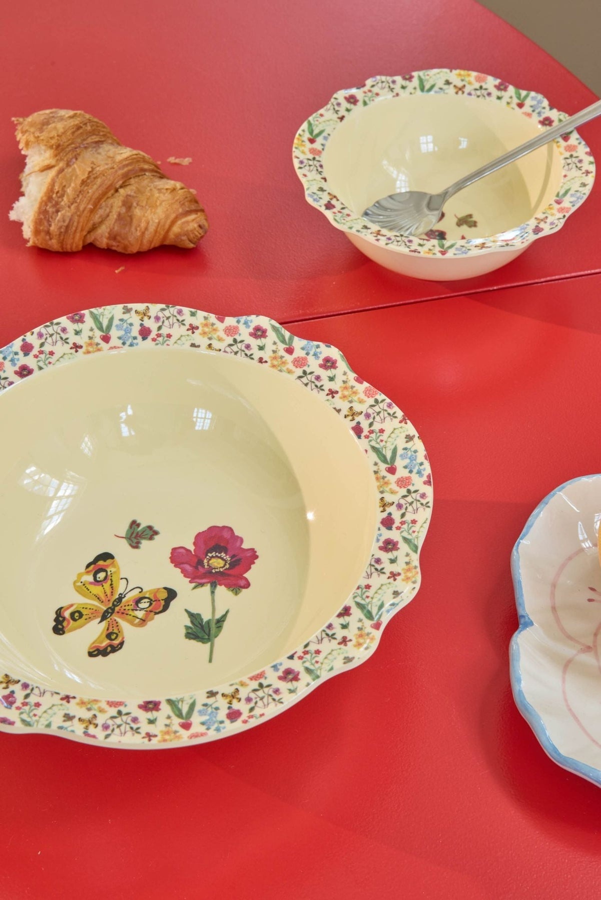 Wij zijn helemaal verliefd op deze Rice kom, ontworpen in samenwerking met Nathalie Lété! Met een gele vlinder en bloemrijke vintage-print is hij perfect voor salade of zoetigheid. Gemaakt van sterk melamine – duurzaam, praktisch en een uniek cadeau!