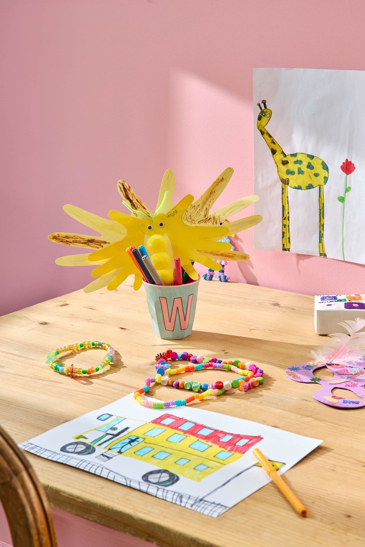 Melamine mok van RICE met de letter W in vrolijke kleuren en bloemenprint. Perfect voor drinken, pennen of picknicks. Mix en match om berichten te maken of te personaliseren voor het gezin. Een praktische favoriet en een uniek cadeau!