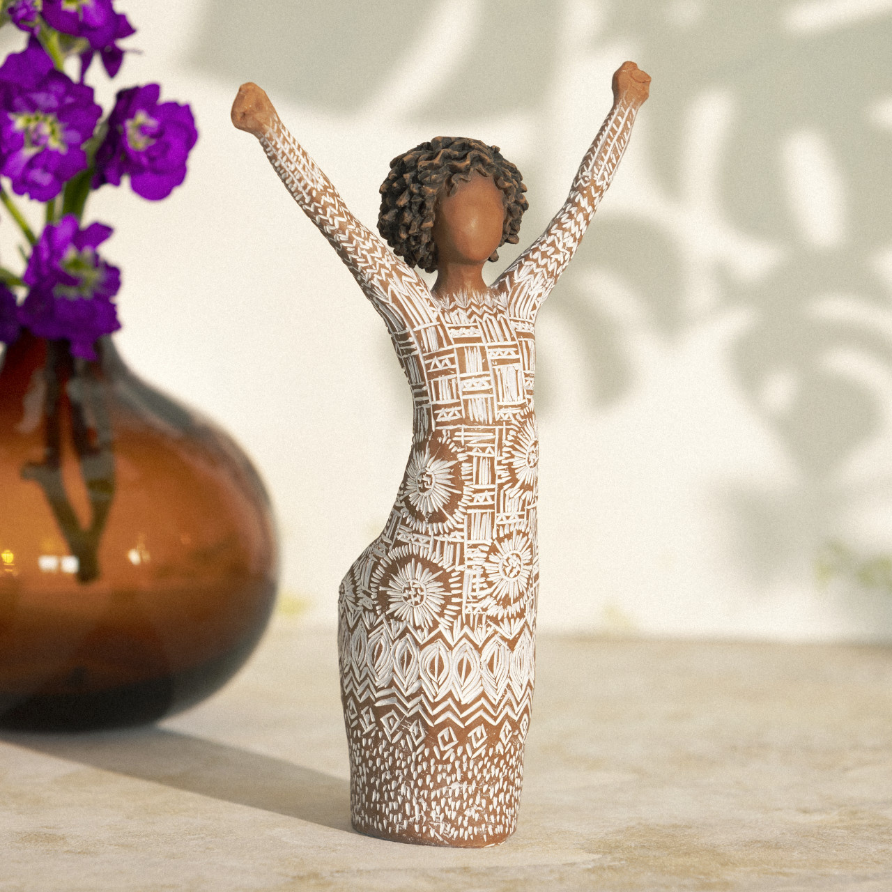 Susan Lordi wants to celebrate ones heritage with this piece showing this through the traditional African woven Kente cloth and markings on the dress. All of our new Willow Tree pieces come in recyclable packaging.