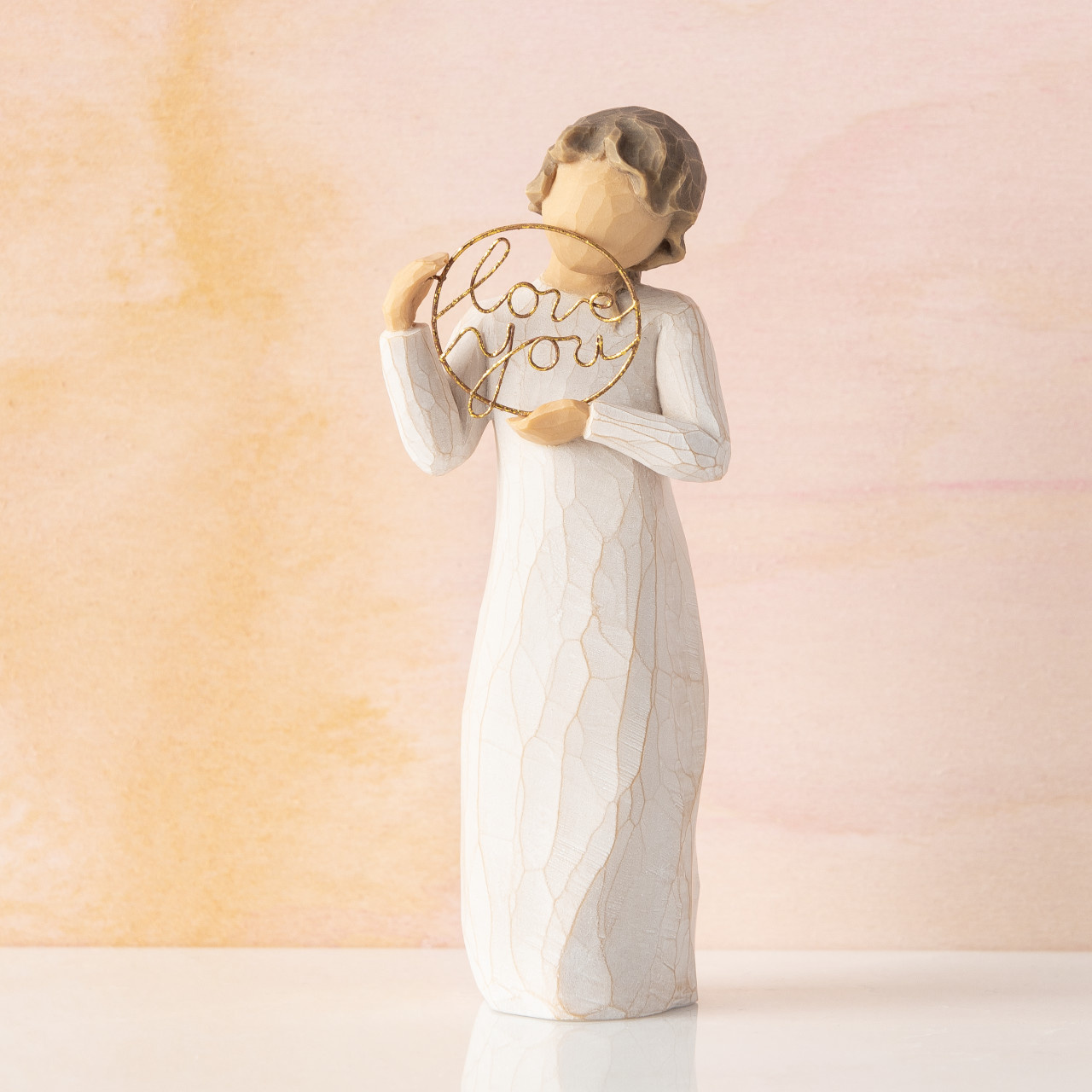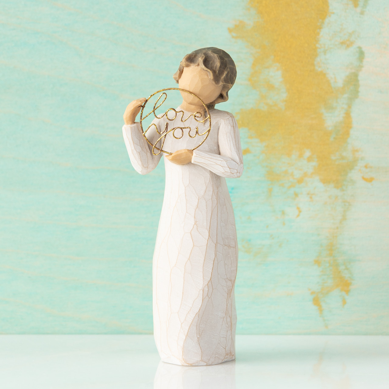 "A new addition to this best selling collection is the Love you figure which has a beautiful gesture and sentiment determined by the giver and receiver."Love you" Two small words, said frequently in parting, which mean so much. This figure displays your feelings - on the record - as a visible reminder to the people in your life to whom you can't say it enough. To your children , your spouse, your Valentine, your friends....Just a little reminder. It can be a little reminder of someone who loves you...or is thinking of you. It is beautiful to signify love, friendship, best wishes and congratulations ."