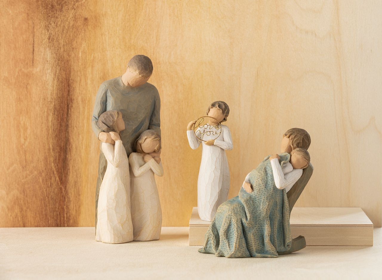 Willow Tree beeldjes zijn prachtige cadeaus voor bijzondere gelegenheden. Elke origineel Willow Tree figuur wordt met de hand door de kunstenares Susan Lordi ontworpen, waarbij haar familie en vrienden model staan. Bij elk beeldje probeert Susan een bepaald gevoel of gebeurtenis op een subtiele manier uit te beelden. De gegoten beeldjes die vervolgens aan de hand van het originele model worden gegoten stralen hetzelfde vakmanschap én het door de kunstenares ingelegde gevoel uit. De Willow Tree beeldjes worden met de hand beschilderd. De Willow Tree beeldjes worden gekenmerkt door het gebruik van zachte kleuren en de verwijzingen naar de natuur. Susan: "Ik probeer bij elk figuur een open uitstraling te creëren. Zo hoop ik dat er persoonlijkheid ontstaat en toch ook de vrijheid om te interpreteren." De Willow Tree beeldjes drukken door subtiele gebaren liefde, geborgenheid, hoop en moed uit. De Willow Tree beeldjes zijn prachtige cadeaus voor de mensen die dicht bij ons staan: voor onze familie, vrienden of mensen die op een andere manier iets bijzonders voor ons betekenen. Met recht een uniek cadeau!