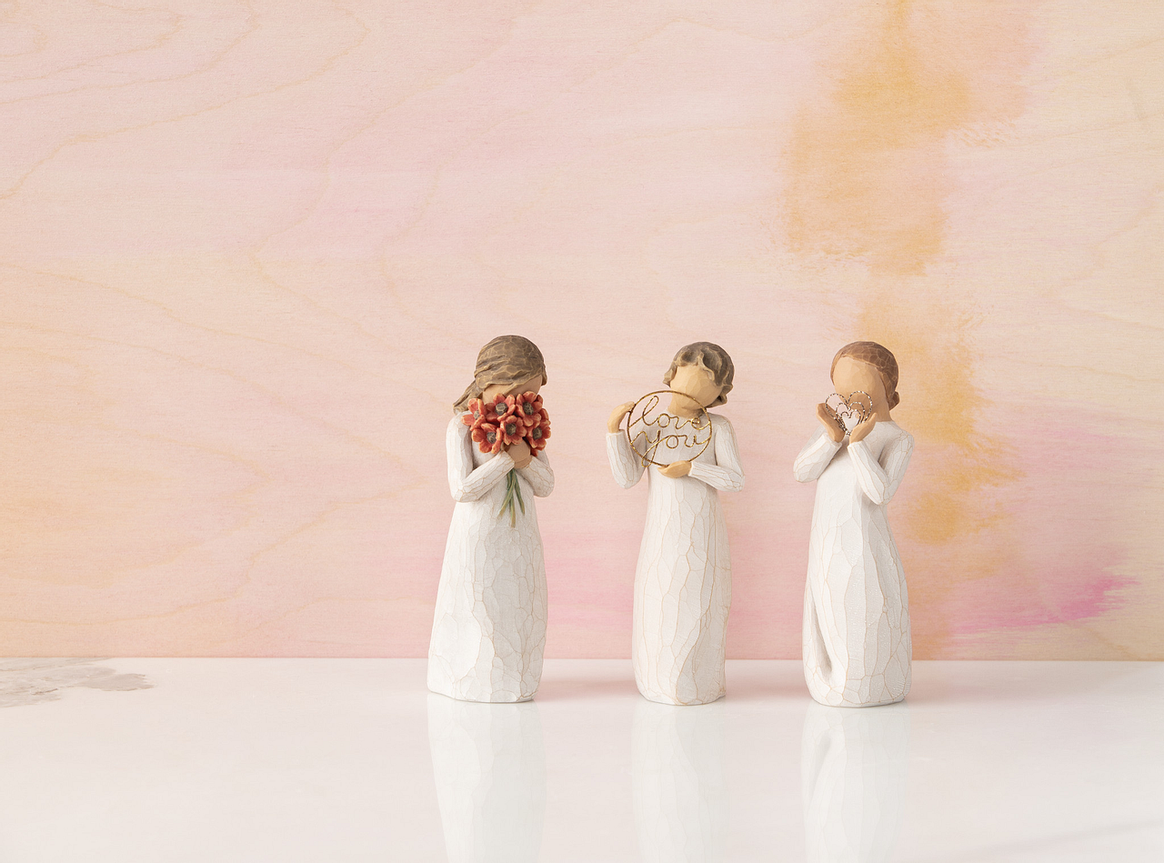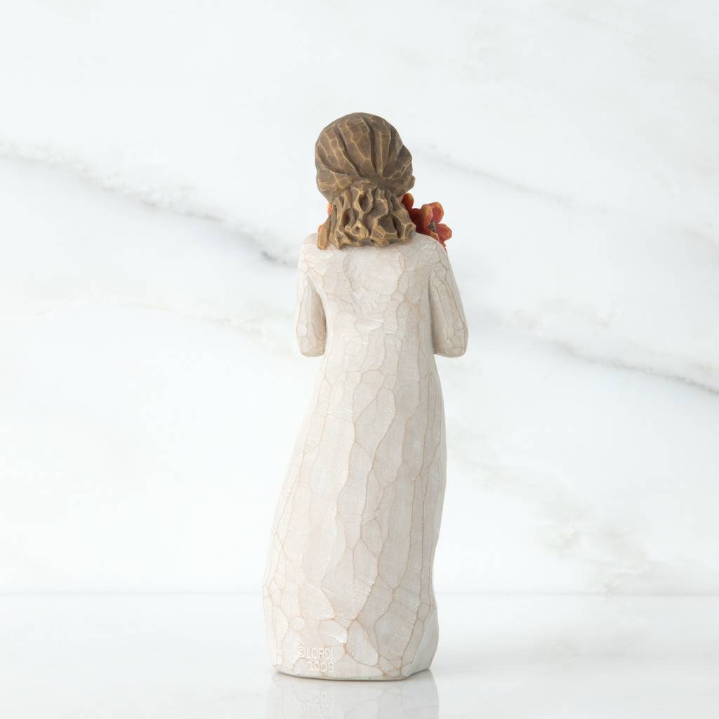 Willow Tree beeldjes zijn prachtige cadeaus voor bijzondere gelegenheden. Elke origineel Willow Tree figuur wordt met de hand door de kunstenares Susan Lordi ontworpen, waarbij haar familie en vrienden model staan. Bij elk beeldje probeert Susan een bepaald gevoel of gebeurtenis op een subtiele manier uit te beelden. De gegoten beeldjes die vervolgens aan de hand van het originele model worden gegoten stralen hetzelfde vakmanschap én het door de kunstenares ingelegde gevoel uit. De Willow Tree beeldjes worden met de hand beschilderd. De Willow Tree beeldjes worden gekenmerkt door het gebruik van zachte kleuren en de verwijzingen naar de natuur. Susan: "Ik probeer bij elk figuur een open uitstraling te creëren. Zo hoop ik dat er persoonlijkheid ontstaat en toch ook de vrijheid om te interpreteren." De Willow Tree beeldjes drukken door subtiele gebaren liefde, geborgenheid, hoop en moed uit. De Willow Tree beeldjes zijn prachtige cadeaus voor de mensen die dicht bij ons staan: voor onze familie, vrienden of mensen die op een andere manier iets bijzonders voor ons betekenen. Met recht een uniek cadeau!