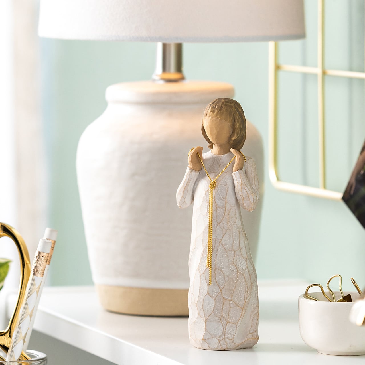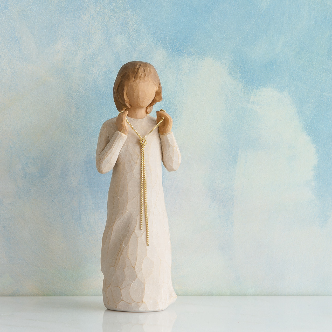 Willow Tree beeldjes zijn prachtige cadeaus voor bijzondere gelegenheden. Elke origineel Willow Tree figuur wordt met de hand door de kunstenares Susan Lordi ontworpen, waarbij haar familie en vrienden model staan. Bij elk beeldje probeert Susan een bepaald gevoel of gebeurtenis op een subtiele manier uit te beelden. De gegoten beeldjes die vervolgens aan de hand van het originele model worden gegoten stralen hetzelfde vakmanschap én het door de kunstenares ingelegde gevoel uit. De Willow Tree beeldjes worden met de hand beschilderd. De Willow Tree beeldjes worden gekenmerkt door het gebruik van zachte kleuren en de verwijzingen naar de natuur. Susan: "Ik probeer bij elk figuur een open uitstraling te creëren. Zo hoop ik dat er persoonlijkheid ontstaat en toch ook de vrijheid om te interpreteren." De Willow Tree beeldjes drukken door subtiele gebaren liefde, geborgenheid, hoop en moed uit. De Willow Tree beeldjes zijn prachtige cadeaus voor de mensen die dicht bij ons staan: voor onze familie, vrienden of mensen die op een andere manier iets bijzonders voor ons betekenen. Met recht een uniek cadeau!