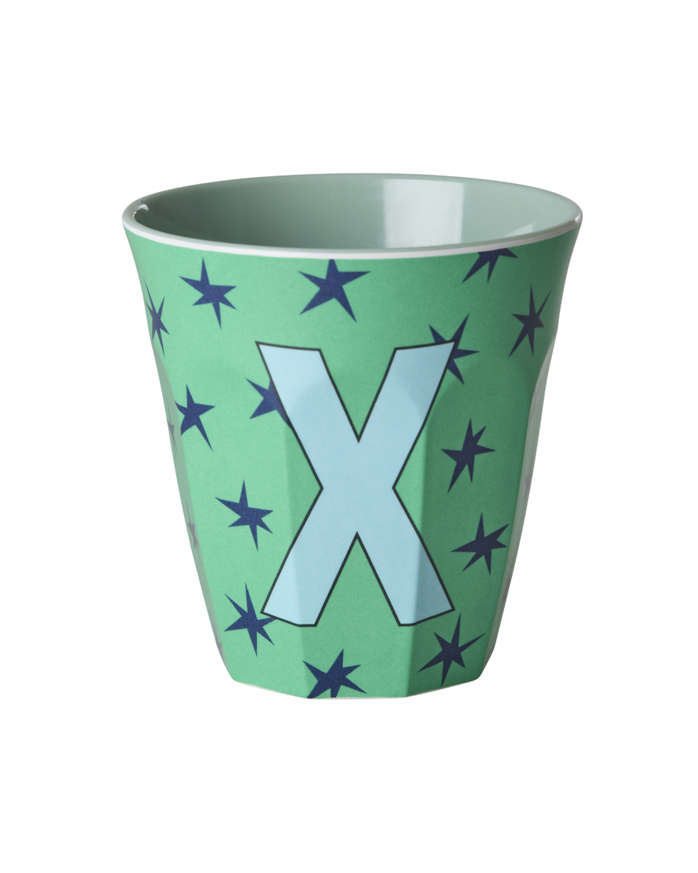 Melamine mok van RICE met de letter X in vrolijke kleuren en sterrenprint. Perfect voor drinken, pennen of picknicks. Mix en match om berichten te maken of te personaliseren voor het gezin. Een praktische favoriet en een uniek cadeau!